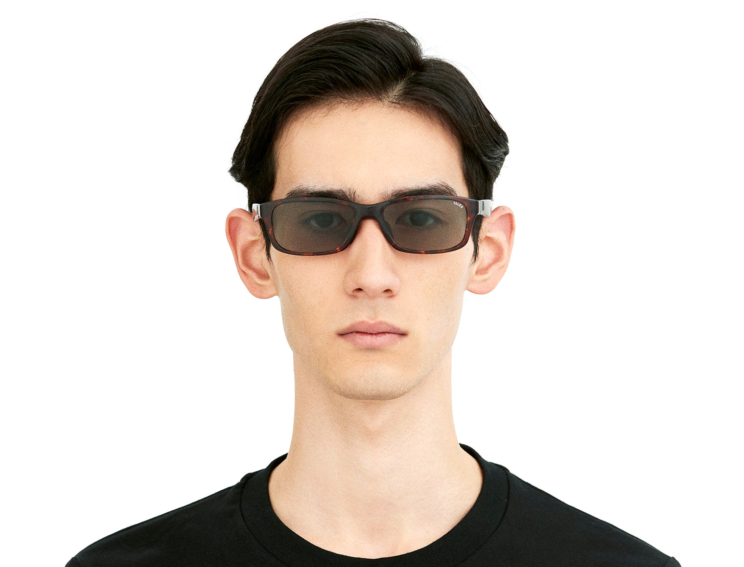 エッジをきかせたスクエア型デザインは、シャープでクールな印象を与えます。 ビジネスシーンから普段使いまで幅広くマッチします。 フレームカラー「ブラウンデミ×クリアグレー」は、肌なじみが良く、優しく柔らかな印象へと導くカラー。べっ甲調がアクセントとなり、ワンランク上のオシャレを楽しめます。テンプルは落ち着きのあるクリアグレーで、横顔を美しく演出します。 レンズカラー「トゥルービュー」は、世界で唯一カラーで特許を取得しています。目にしたすべての色彩をありのままに再現するのはこのトゥルービューだけ。眩しさと照り返しをしっかりカットしながらクリアな視界へ。